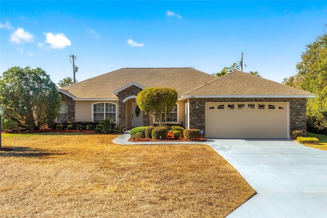 This thoughtfully designed custom home offers 2,539 square feet of living space, plus an additional 200 square feet under A/C and heat in the enclosed Florida Room with double-pane windows-currently used as a comfortable TV/family room.Curb appeal is immediate with mature landscaping, attractive stonework, a color-sealed driveway, and a yard light that enhances the home's presence.Inside, you're welcomed by a spacious foyer and a well-planned layout featuring three bedrooms, a private office with pocket doors, and generous living areas designed for both everyday comfort and entertaining.The primary suite is generously sized and includes a built-in nook-ideal for an armoire or workspace-along with a large walk-in closet. The ensuite bath offers a walk-in shower, Jacuzzi tub, dual sinks, and a built-in linen closet.The kitchen features beautiful cabinetry, a porcelain double-bowl sink, abundant counter space, and stainless steel appliances, including a five-burner gas range. A skylight fills the space with natural light, complementing the adjacent casual dining area with bay window. A formal dining room provides additional space for hosting gatherings.This one-owner, custom-built home has been meticulously maintained. Major updates include a new roof in 2023 and A/C in 2019.If you've been searching for a spacious, one-of-a-kind home in Marion Oaks, Ocala, this is a must-see.